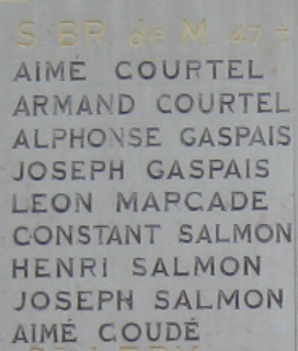 Saint-Brieuc-de-Mauron / Lors des combats de la première guerre mondiale, 43 soldats originaires de la commune sont tombés au Champ d’Honneur. Joseph BERNARD Eugène BONNET Henri CHARDEVEL Désiré COURTEL Joseph FICHET Aimé GALLIOT Henri GERVAIS Louis GAUDIN Jean-Pierre GRASLAND Jean GUILLARD François MARTIN Pierre LETOURNEL Joseph PINSON Pierre MINIER Jean SÉBILLOT Eugène BERTHELOT Jean BONNET Henri CHANTREL Aimé COURTEL Alexandre DESMOY Alphonse FOULON Alphonse GASPAIS Théophile GERVAIS Alphonse GRASLAND Joseph GRASLAND Armand GUILLON Henri LUCAS Désiré MORIN Aimé PINSON Eugène RENAULT Aimé THAMIN Joseph BERTHELOT Pierre BOUEDO Armand COURTEL Aimé COUDE Ernest DUNOT Prosper GADET Eugène GERVAIS Désiré GRASLAND Eugène GUILLARD Ange GUILLOTIN Léon MARCADE Joseph MOURAUD Jean PINSON Henri SALMON Pierre SOHIER Joseph SALMON Plaque commémorative de Sainte-Anne-d’AURAY (Morbihan) Monument aux Morts de Saint-Brieuc-de-Mauron