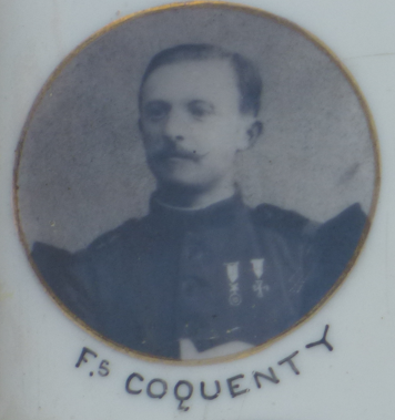 François COQUENTY / François Mathurin Marie COQUENTY est né le 18 mai 1881 à Loyat (Morbihan) et est décédé le 17 avril 1916 à Avocourt (Meuse) Il était incorporé au 3ème Régiment de Zouaves – (Grade : Sergent) Insigne du Régiment du 3ème Zouaves