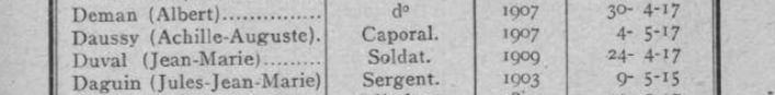 Le référentiel de Geneanet mentionne un décès au 24 avril 1915 or Jean DUVAL est bien décédé en 1917.