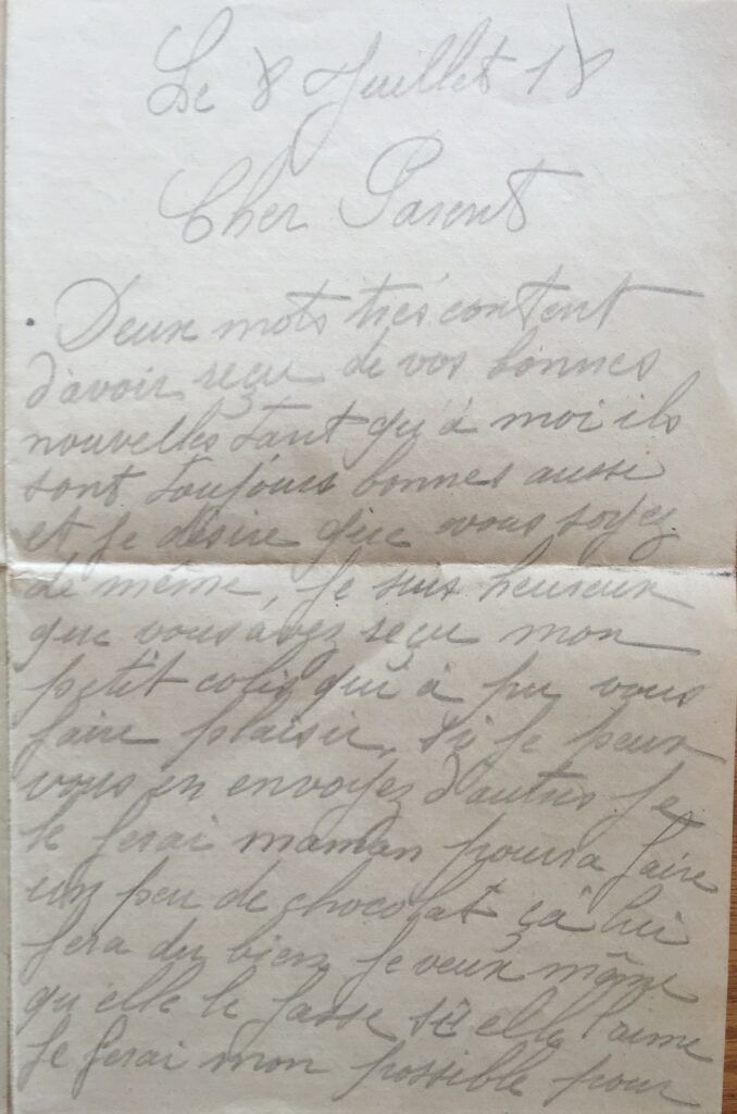 D.P. Lettre du 8 juillet 1918