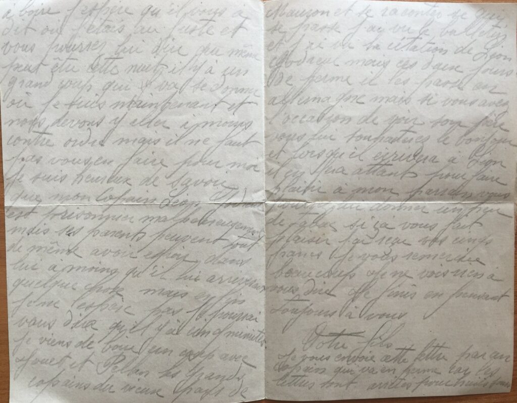 Je vous envoie cette lettre par un copain qui vat en perme car les lettres sont stoppées pour huit jours.
