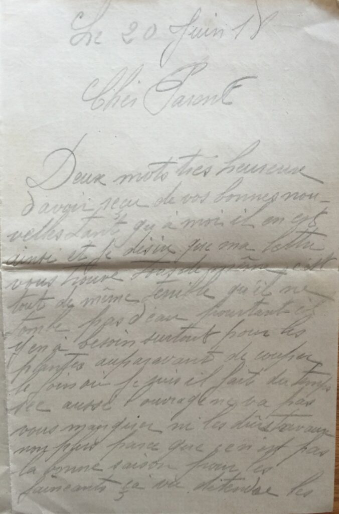 D.P. Lettre du 20 juin 1918