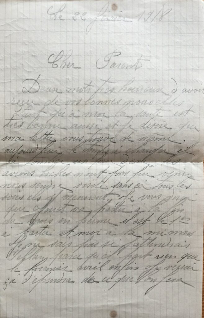 D.P. Lettre du 22 février 1918