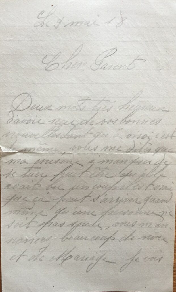 D.P. Lettre du 9 mai 1918