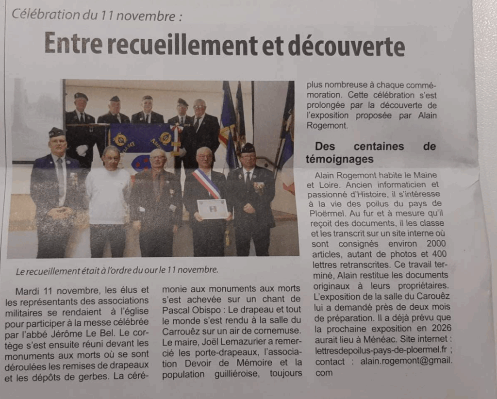 Site internet : lettresdepoilus-pays-de-ploermel.fr, contact : alain.rogemont@gmail.com.