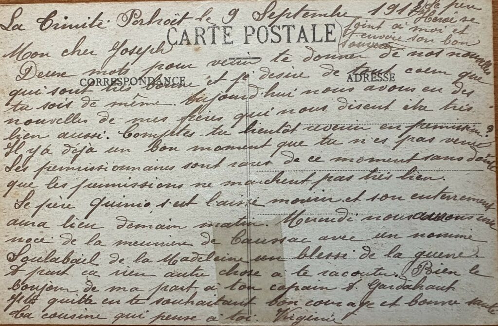 La-Trinité-Porhoët (Morbihan), le 09-09-1917. Mon cher Joseph,